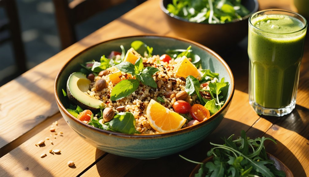 You can cut your risk of premature death by about 15–25% by shifting toward a plant‑forward eating pattern rich in whole grains, legumes, vegetables, nuts and seeds and minimal processed animal products. Plant proteins and fiber improve lipids, blood pressure, insulin sensitivity and gut microbiome diversity, lowering cardiovascular, metabolic and some cancer risks. These shifts also slow cellular aging markers like telomere shortening. Keep going and you’ll find practical swaps, life‑stage guidance and mechanistic evidence to support change.
