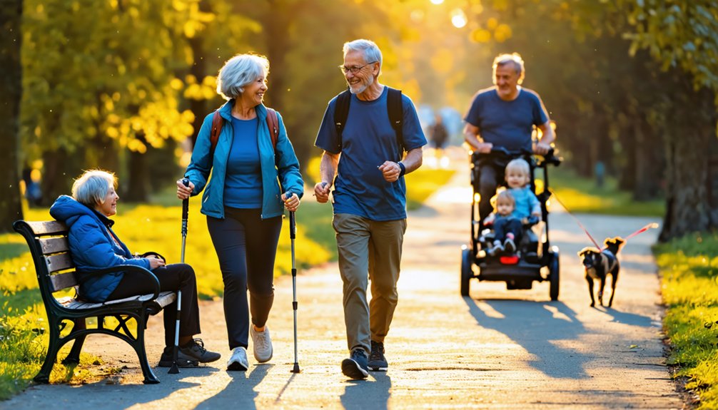 Keeping your body moving is one of the most effective things you can do to age well: research links better midlife mobility with longer life and lower risk of chronic diseases, while regular mobility workโstrength, flexibility, balance, and aerobic activityโimproves circulation, reduces inflammation, preserves muscle and bone, and lowers your chances of heart disease, diabetes, several cancers, dementia, and disability. Youโll protect independence by building functional resilience: strength training counters age-related muscle loss, flexibility prevents everyday injury, and balance work cuts fall risk. Regular activity also boosts mood, sleep, and immunity, reducing hospitalization harms. Communities that prioritize movement equity make certain everyone can access safe programs and spaces, so everyoneโregardless of backgroundโcan age with dignity, connection, and sustained function. Evidence shows even very late starters can gain measurable benefits from tailored programs, improving strength and mobility in weeks with consistent practice can improve mobility. In addition, simple self-report tools can help detect early changes so people get preventive support before major decline (early identification). A single session of moderate to vigorous activity can produce immediate benefits such as reduced anxiety and lower blood pressure.