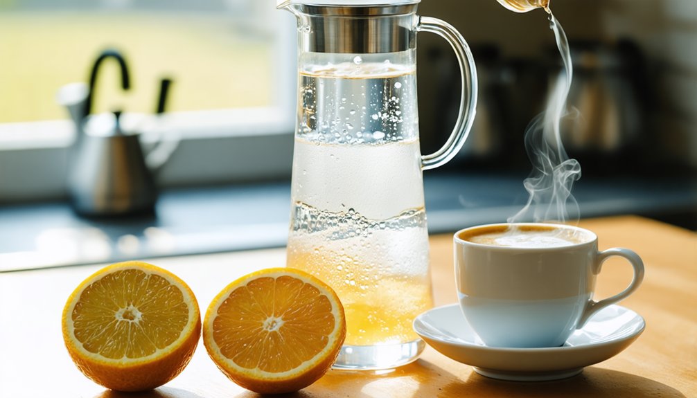 While you slept, your body lost water and a quick, targeted morning routine will restore balance and jump-start steady energy for the day. Start with plain water or an electrolyte-enhanced drink to replace the 1โ2% fluid loss; studies show rehydration clears brain fog and boosts alertness within 30 minutes, reducing morning cognitive deficits. Follow consistent hydration intervals every 90โ120 minutes to align with circadian cues and prevent afternoon crashes. In the evening, modest bedtime sipping with balanced electrolytes reduces overnight fluid loss, supports toxin clearance, and helps regulate cortisol for a smoother morning. Youโll feel steadier when you adopt these simple, evidence-based habits as part of a shared routine that supports daily focus and mood. Additionally, maintaining all-day hydration links to better cognitive performance and mood across the day. Electrolytes also play a key role in supporting muscle function during morning exercise and recovery. Evening hydration also helps support kidney function.